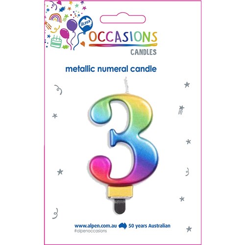 Alpen Jumbo Numerical Birthday Candle No. 3 Metallic Rainbow