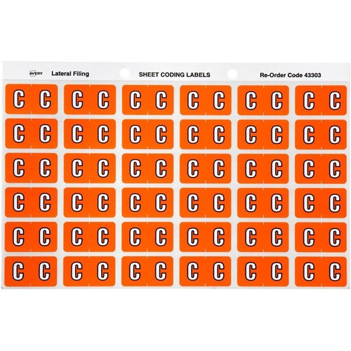 Avery Alphabet Coding Label C Side Tab 25x38mm Orange Pack Of 180