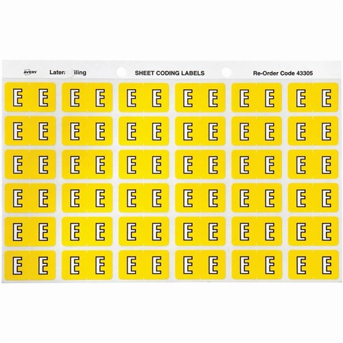 Avery Alphabet Coding Label E Side Tab 25x38mm Yellow Pack Of 180