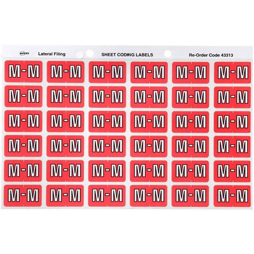 Avery Alphabet Coding Label M Side Tab 25x38mm Pink Pack Of 180