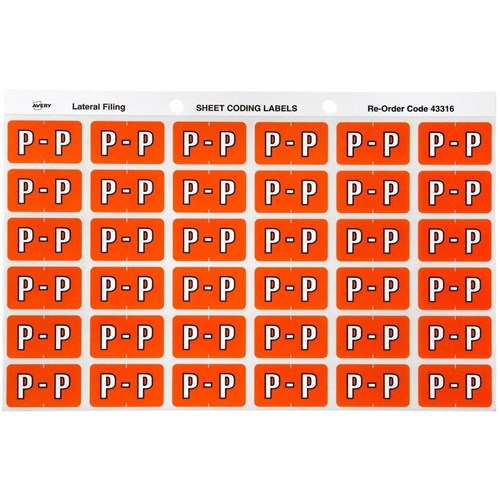 Avery Alphabet Coding Label P Side Tab 25x38mm Dark Orange Pack Of 180