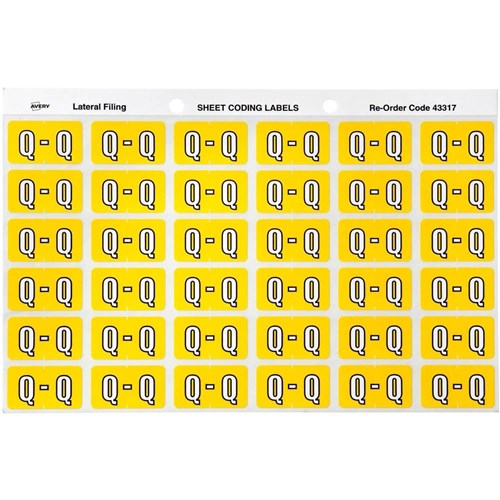 Avery Alphabet Coding Label Q Side Tab 25x38mm Yellow Pack Of 180