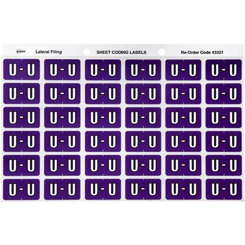 Avery Alphabet Coding Label U Side Tab 25x38mm Purple Pack Of 180