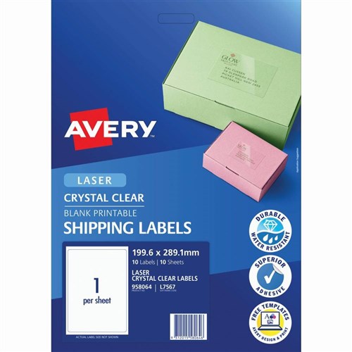 Avery Crystal Clear Laser Shipping Labels White L7567 199.6x289.1mm 1UP 25 Labels