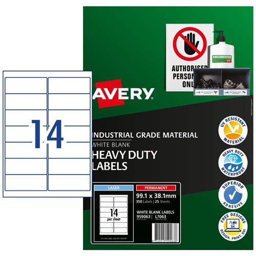 Avery Identification Laser Heavy Duty White L7063 99.1x38.1mm 14UP 350 Labels