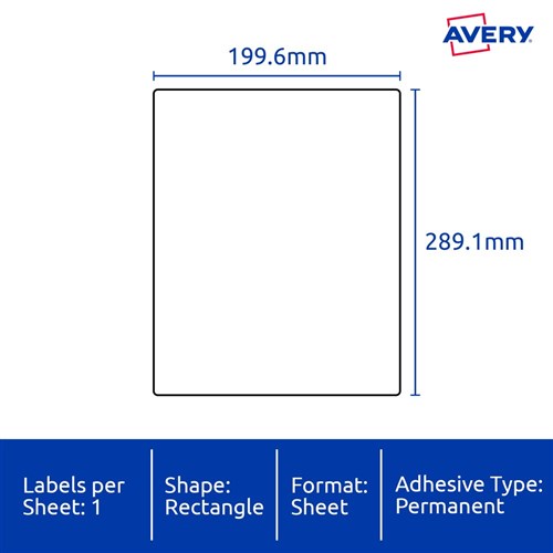 Avery Identification Laser Heavy Duty White L7067 199.6 x 289.1mm 1UP 25 Labels