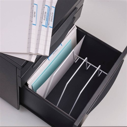 Suitable for upright filing in file cabinets, file cabinet drawers and shelving.