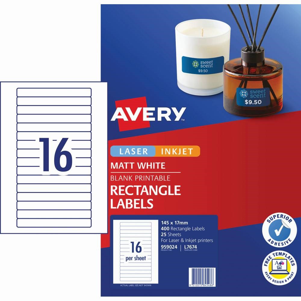 Avery Multi-Purpose Laser & Inkjet Labels White L7674 145x17mm 16UP 400 Labels