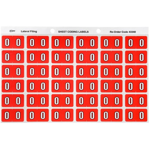 Avery Numeric Coding Label 0 Side Tab 25x38mm Pink Pack Of 180