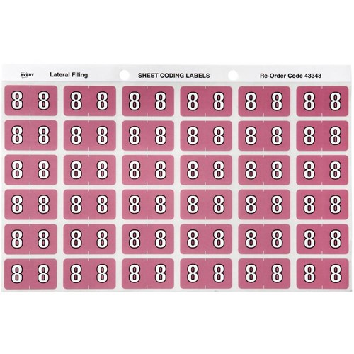 Avery Numeric Coding Label 8 Side Tab 25x38mm Mauve Pack Of 180