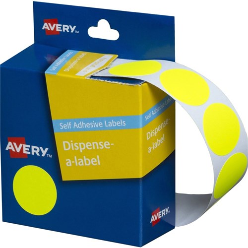 Avery Removable Dispenser Labels 24mm Round Yellow Pack Of 500