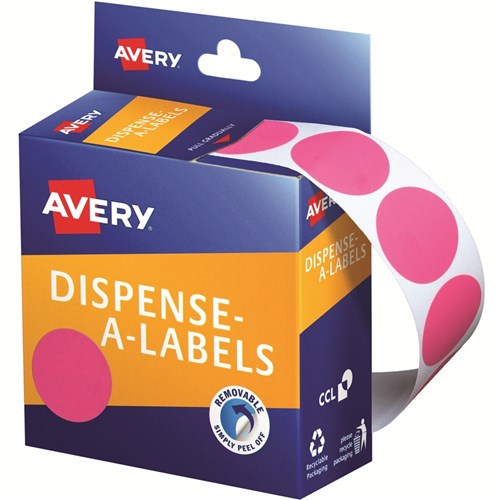 Avery Removable Dispenser Labels 14mm Round Pink Pack Of 1050