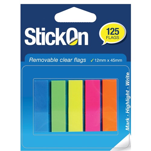 BEAUTONE STICK ON FLAGS 12x45mm 5 Pads x 25 sheets Assorted colours
