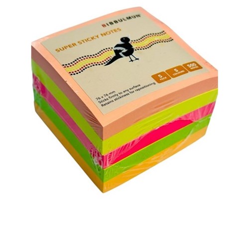 Bibbulmun Super Sticky Notes 76 x 76mm Neon Assorted Pack Of 5