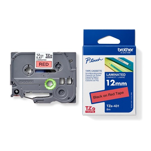 Brother TZE-431 P-Touch Tape 12mmx8m Black on Red