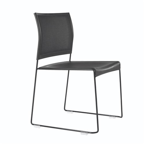 Composition: Mesh back and Polypropylene seat. Black powder coat base.