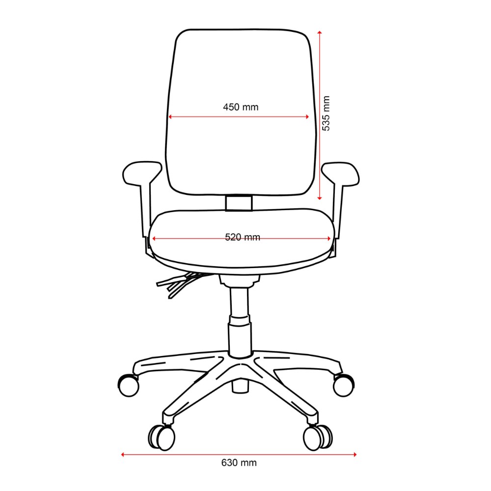 Armrests. Ratchet height adjustable back/lumbar.