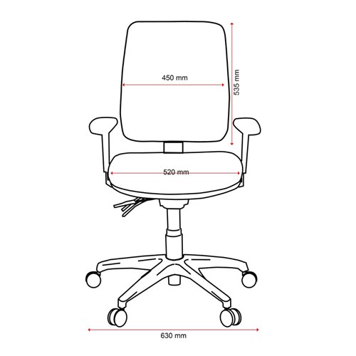 Armrests. Ratchet height adjustable back/lumbar.