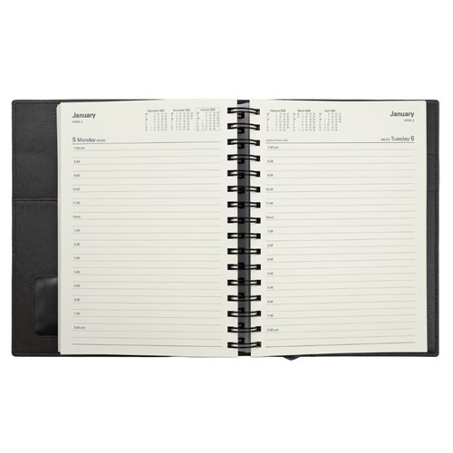 Ideal for those 'on the move' with its double wiro binding and heavily grained metallic and matt PU cover.