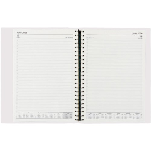 Day to page layout diary to keep track of appointments, meetings, and other important events.