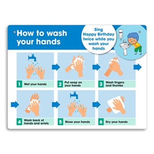 DURUS WALL SIGN - How to Wash Your Hands 225x300mm Polyprop (Primary School)