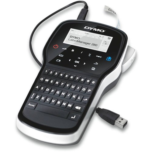 • Includes LabelManager™ 280 Label Maker, rechargeable battery pack, USB cable and D1 starter label cassette, black on white 12mm x 3m.