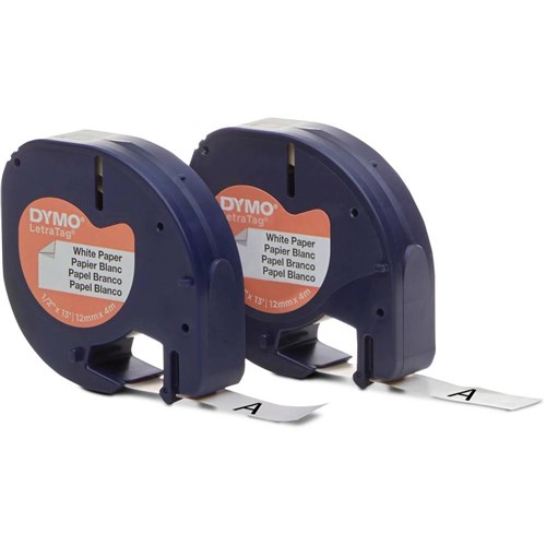 Dymo LetraTag Paper Labels 12mm x 4m Pack of 2 Black On White