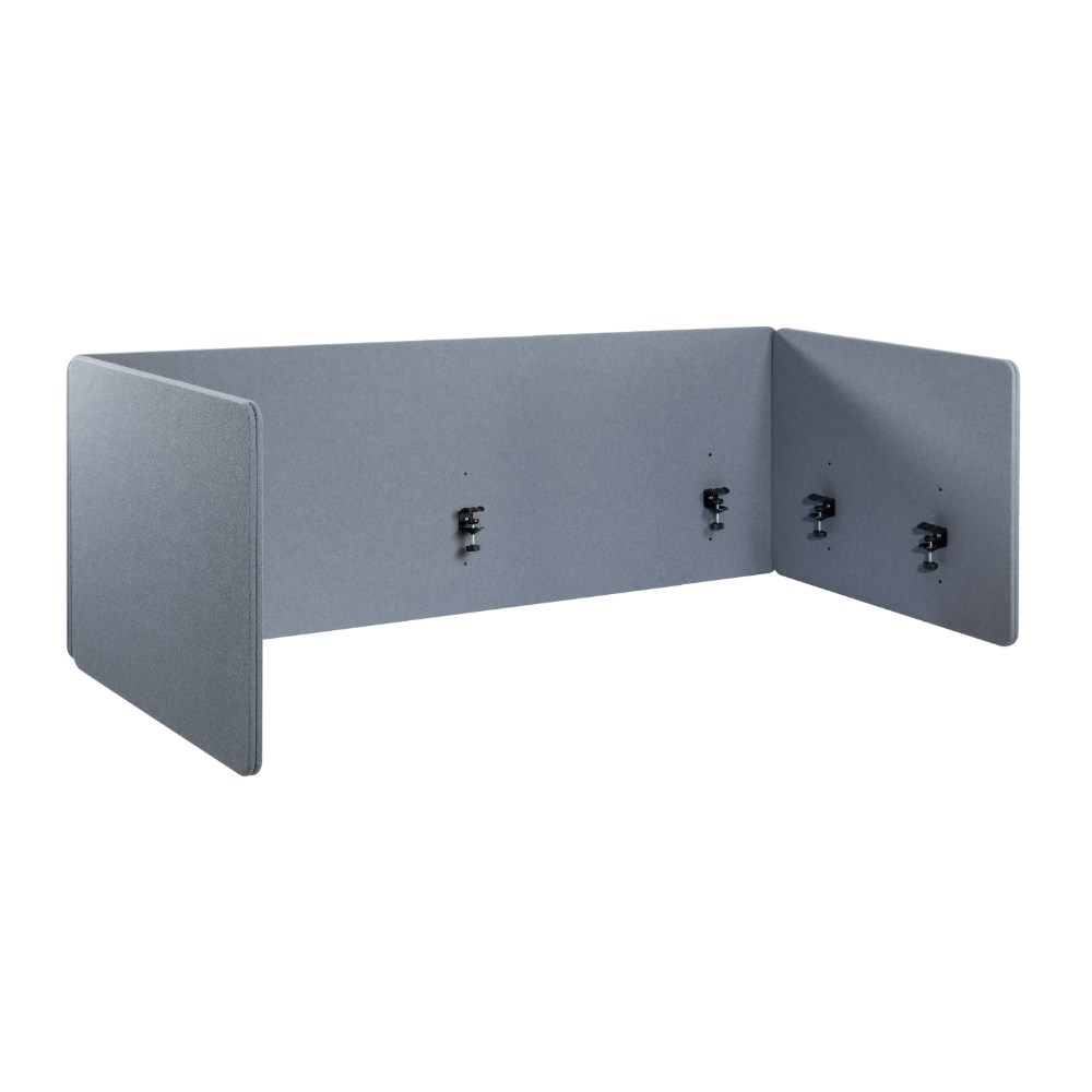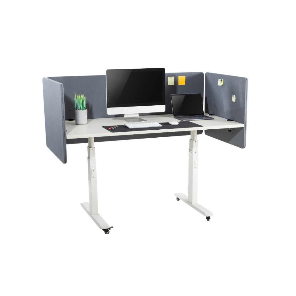 Desk-mounted polyester fibre privacy panels are designed to create a serene and productive environment.