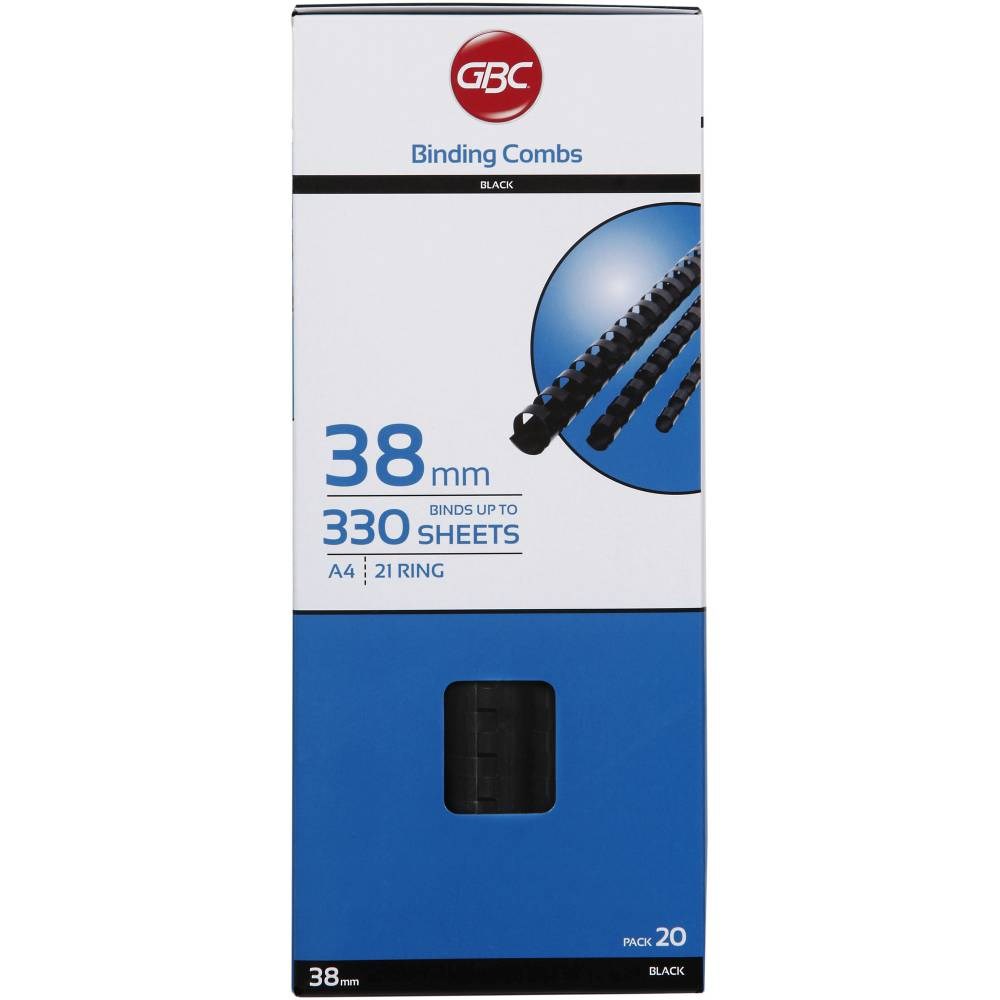GBC Plastic Binding Comb 38mm 21 Loop 330 Sheets Capacity Black Pack Of 20