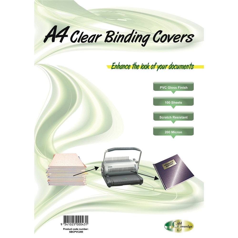 Gold Sovereign Heavy Duty Binding Covers 200 micron A4 Pack of 100 Clear