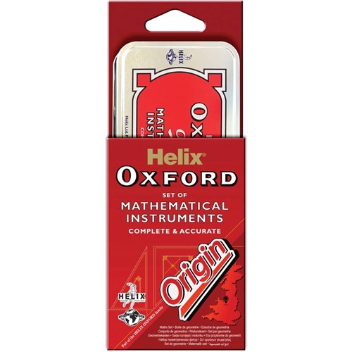 Economy set includes self-centering compass, ruler, protractor, 2 set squares, sharpener.