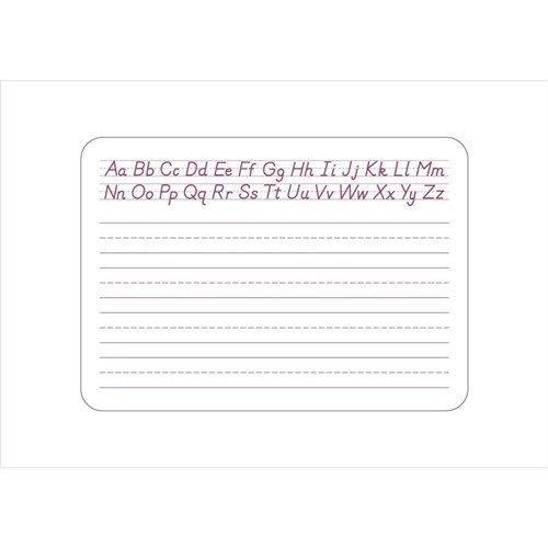 Pre-printed ruled guides to assist in the development of hand writing skills.