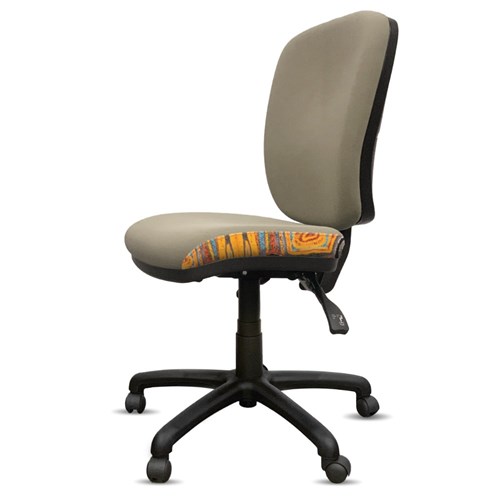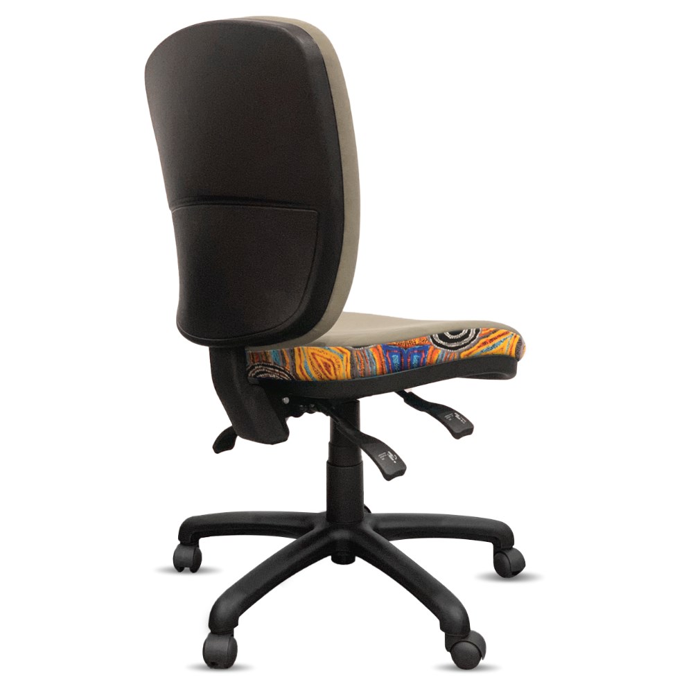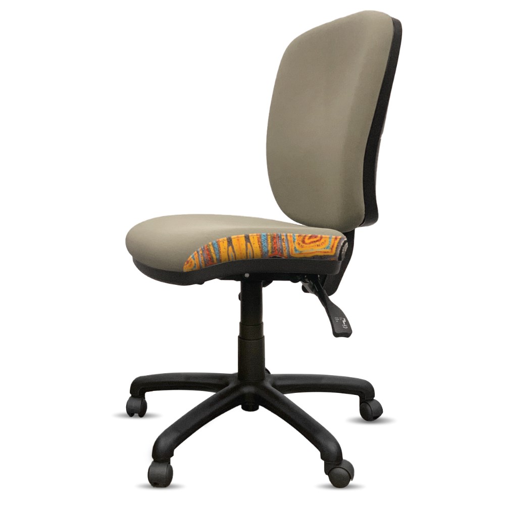 • A unique commercial fabrics designed by Mary Napangardi Brown (Indigenous artist) combined with K2 Mist Grey Fabric to upholster the chair.