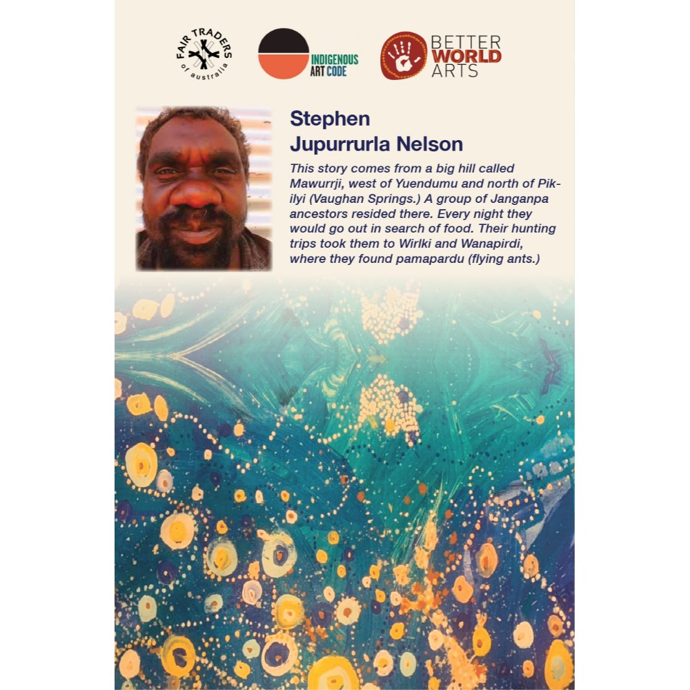 A unique commercial fabric designed by Stephen Jupurrurla Nelson (Indigenous artist) combined with K2 Ocean Blue Fabric to upholster the chair.