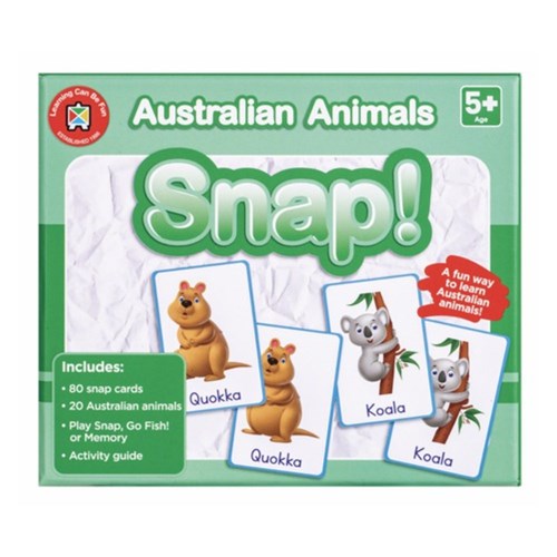 Includes: 80 snap cards, 20 Australian animals and activity guide.