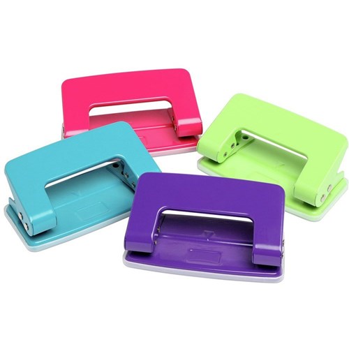 Fun bright 2 hole student punch. Punches up to 6 sheets of 80gsm paper.