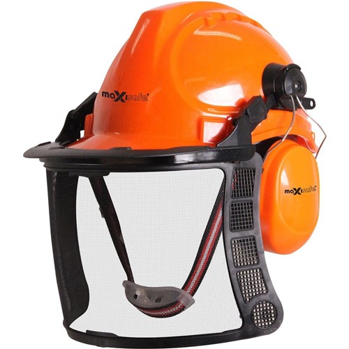 Maxisafe Forestry Kit With Helmet Nylon Mesh Visor And Earmuffs Orange And Black