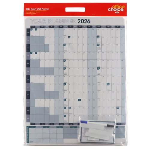 Office Choice Wall Planner 870 x 610mm Year To View White And Blue