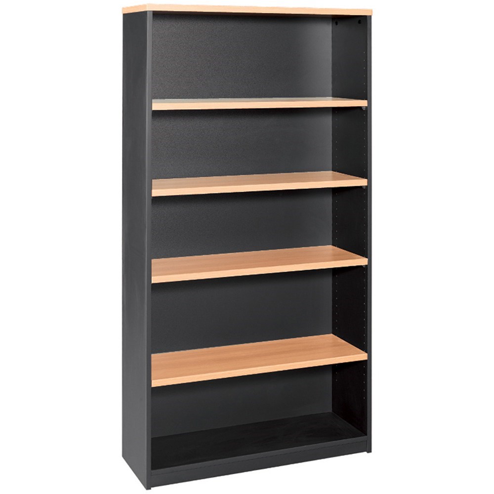 OM Bookcase 900W x 320D x 1800mmH 4 Shelf Beech And Charcoal