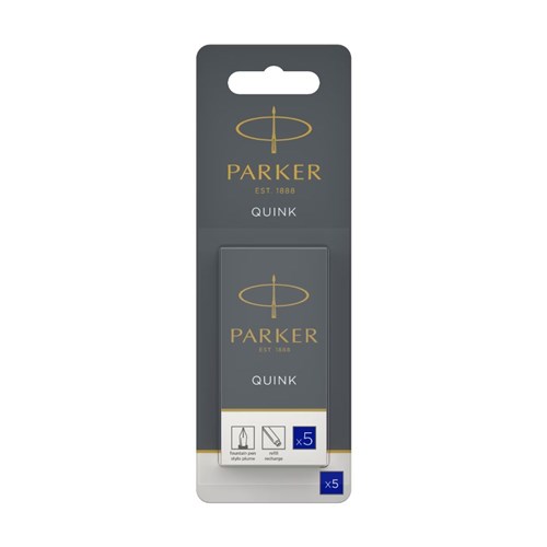Parker Quink Fountain Pen Ink Refill Long Cartridge Blue Pack Of 5
