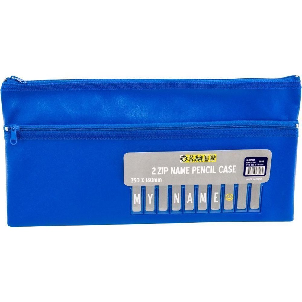 Pencil Case Osmer Name Jumbo Blue 2 Zip 35cm x 18cm Name Card PU Cloth Backed