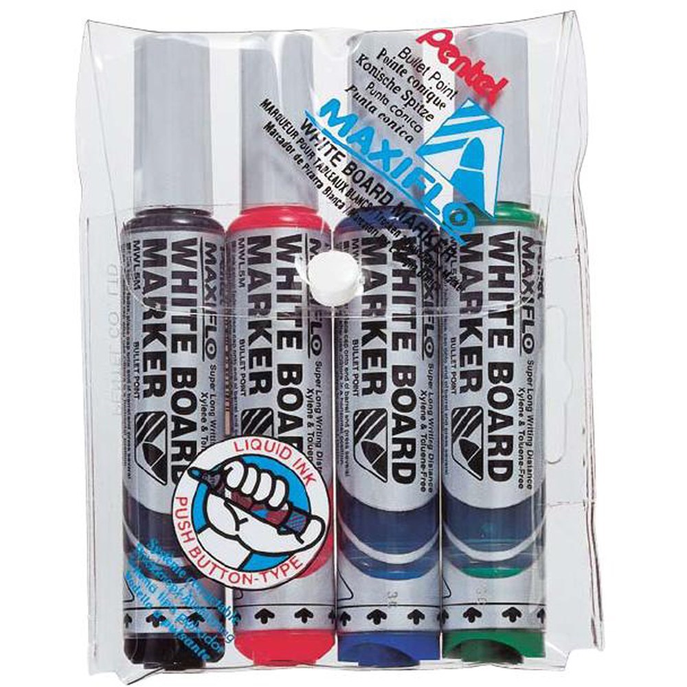 Pentel MWL5 Maxiflo Whiteboard Marker Bullet 2.1mm Pump It Assorted Wallet of 4