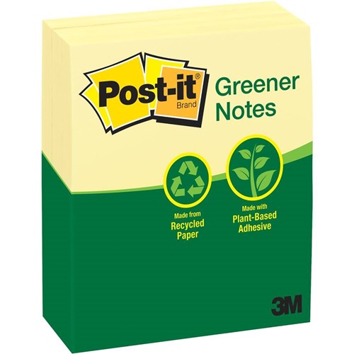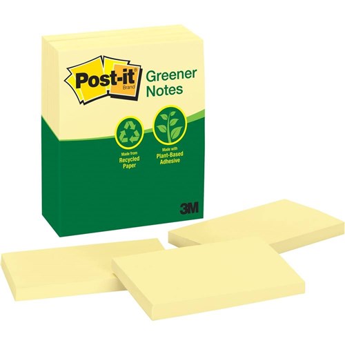 Post-it® Greener Notes in 76mm x 127mm size are made from 100% recycled paper and a plant-based adhesive - which means no new trees were used.
