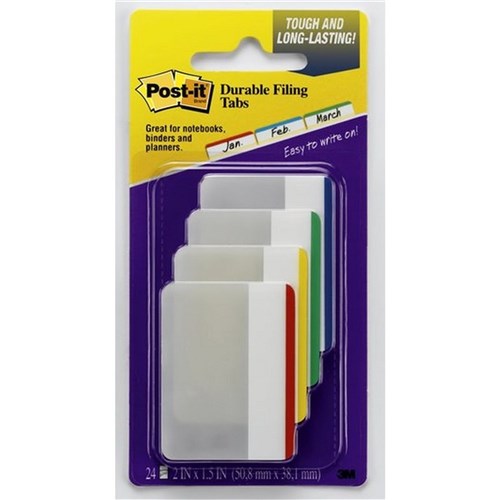 POST-IT 686F-1 DURABLE TABS Flat Whte-RedBluYellGrn 50x38mm PK24
