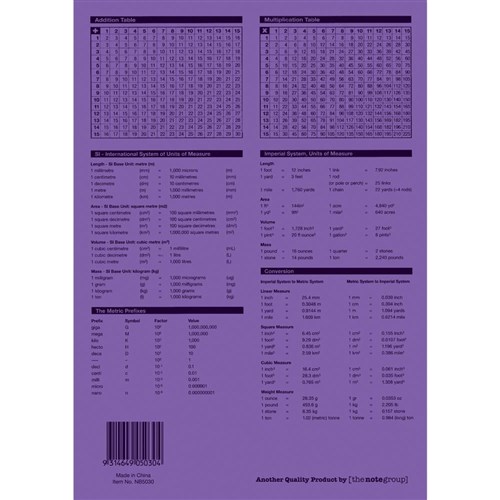 4 year calendar, activity page, maths tables & red margin.