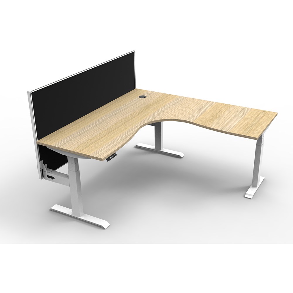 Dual Motor 3 stage motorised legs. Corner Workstation with Screen.
