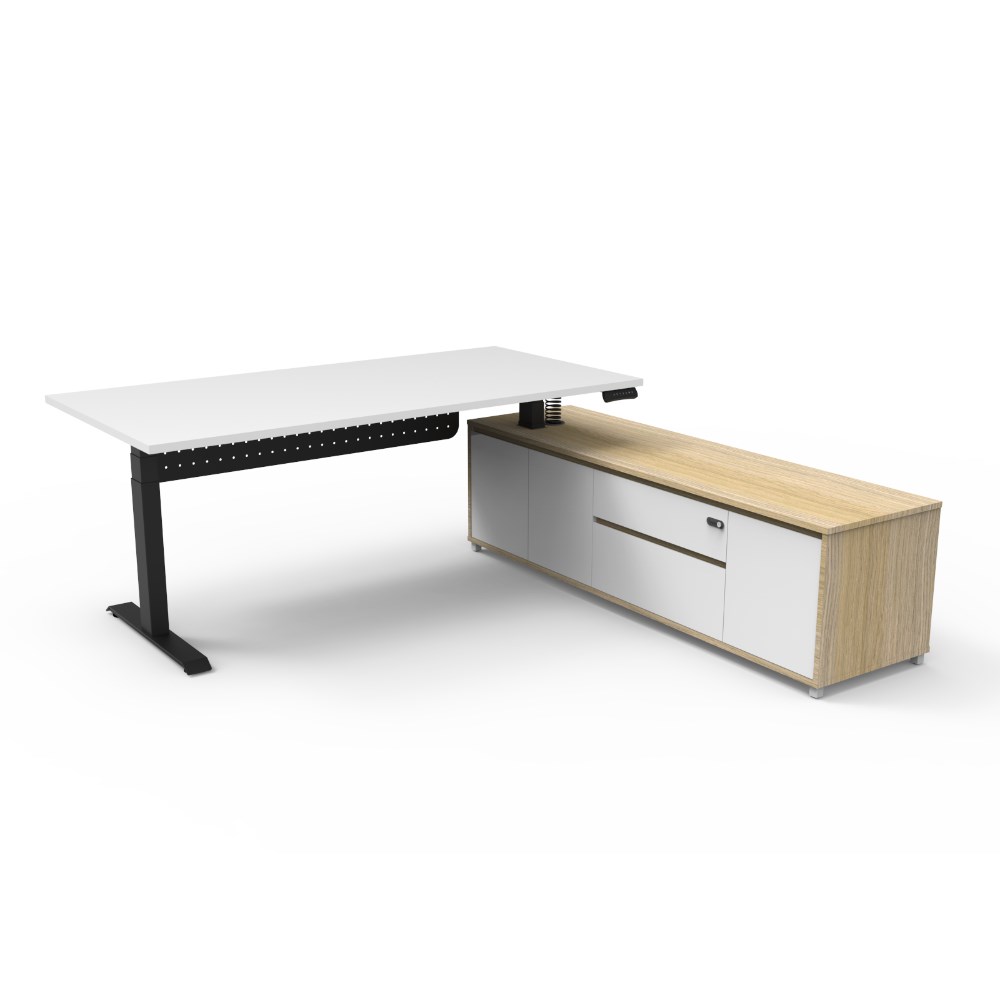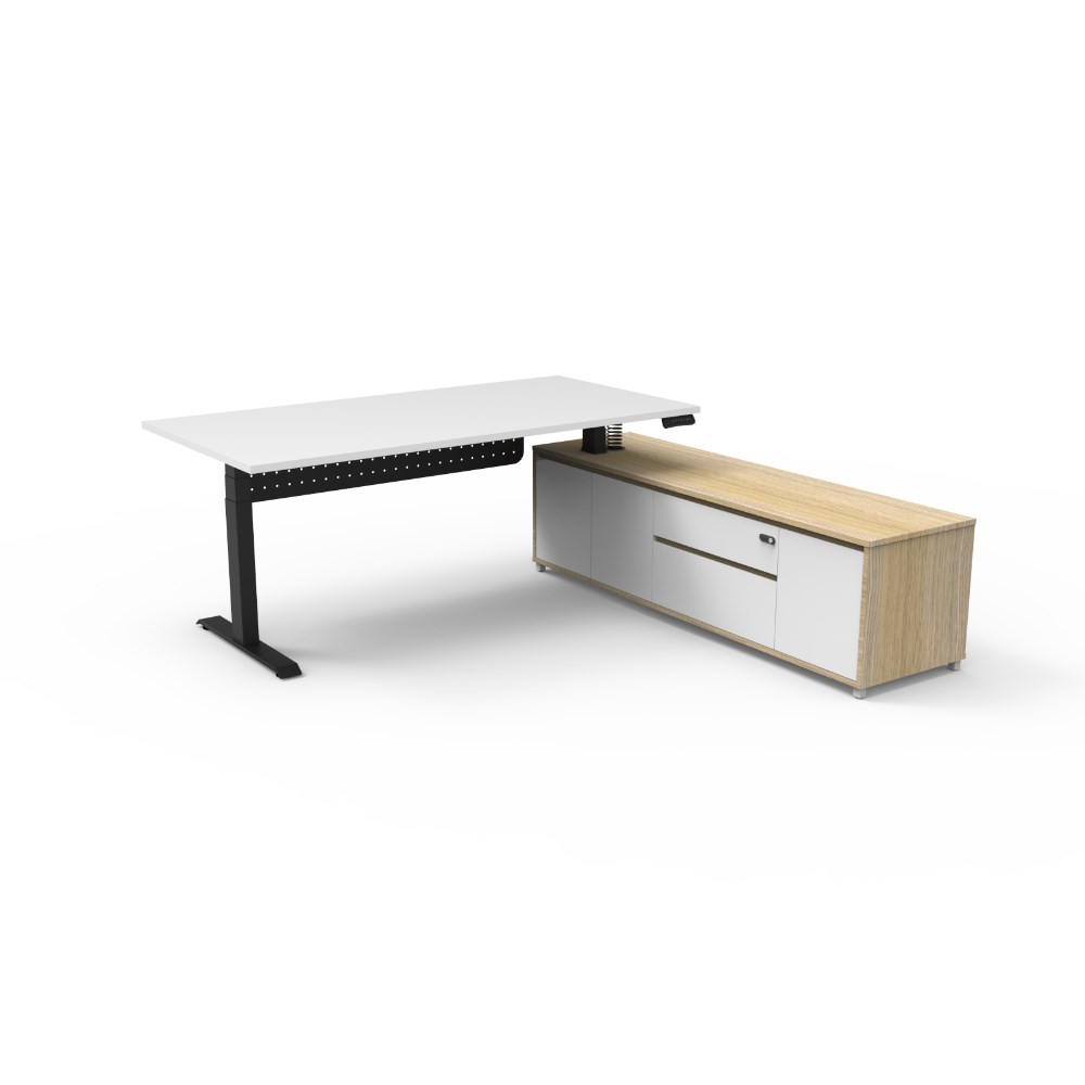 Rapidline Boost+ Executive Desk + RHS Cabinet+Panel 2020W x 2011D x 620-1270mmH Wht/Blk