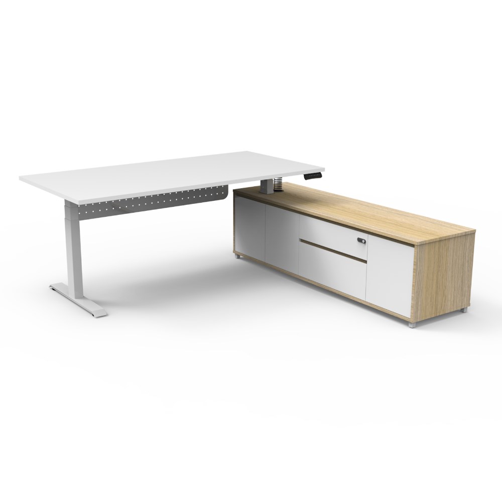 Rapidline Boost+ Executive Desk + RHS Cabinet+Panel 2020W x 2011D x 620-1270mmH Oak/Wht