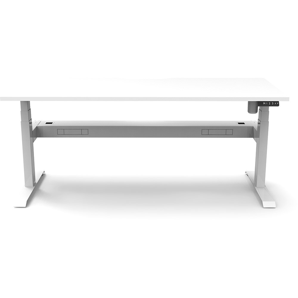 Comes with cable tray for cable management. E0 rated top. Powdercoat base.