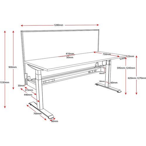 Unit Dimension: 1200mm W x 750mm D x 620-1270mm H.